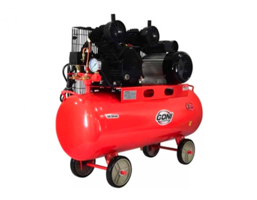 El GONI 970 es un compresor de banda con dos pistones que no se raja ni en las jornadas más pesadas. Trae su rejilla de protección pa’ que no haya sustos, válvula de drenado, llaves tipo globo, y un botón de reset que cuida el motor cuando se calienta de tanto jalar. Además, es lubricado con aceite SAE 40, lo que lo hace más duradero y con un rendimiento parejito.