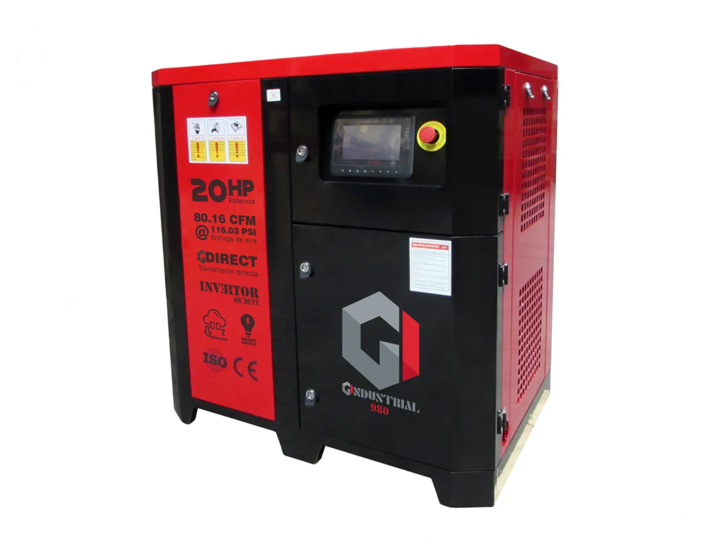 Si lo que necesitas es potencia inteligente, silencio que no distrae y un equipo que rinda sin parar, e lCompresor de Tornillo GONI 20 HP, Modelo 980 es su respuesta.
